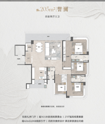 能建·天誉府聚焦高端改善客群全生命周期居住需求,打造建面约133-228㎡奢阔户型,全系遵循广州新规设计,户型使用率高达约100%,采用T3梯户比与私梯入户设计,兼顾私密性、仪式感与实用性。其中建面约228㎡四室两厅三卫户型为项目顶奢主力户型,整体格局全明通透,动静分区清晰,约11.5米超宽江幕观景台直面一线江景,270°环幕飘窗与0.36高窗地比设计,让江景与自然光铺满室内每一处空间。约67㎡LDKB云峯会客厅采用洄游方厅设计,打破传统空间壁垒,拓展家庭公共活动区域,满足家族聚会、宾客宴请等多元场景需求。双主卧套房设计,配备独立卫浴、衣帽间与全景飘窗,保障家族成员居住私密性与舒适度,长辈套房与青年主卧分区布局,兼顾不同年龄段生活习惯。建面约133㎡四室两厅两卫户型为纯南向园景单边户,格局方正实用,6.8米超阔观景台延伸景观视野,LDKB一体化设计提升空间通透感与使用率,全明卫浴干湿分离,入户玄关配备大容量收纳空间,飘窗全赠送进一步提升空间利用率。全系户型均采用私梯入户设计,专属电梯前厅提升归家仪式感,T3梯户比有效保障居住私密性,避免邻里干扰。高使用率、阔绰尺度、景观最大化、功能人性化的户型设计,完美适配二孩家庭、三代同堂等高端改善需求,重新定义南沙江景人居空间标准。