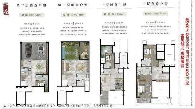 建面约 178-195㎡叠墅产品,共 28 套,分为双拼、四联排、八联排三种类型,是高端改善家庭的终极之选。叠墅产品采用上下两叠的设计,每户都拥有独立的院落或露台,传承了岭南民居 “前庭后院” 的居住精髓,居住舒适度极高。下叠产品拥有独立的南向院落,可作为私家花园、儿童游乐区、休闲茶座使用,彰显主人的生活格调;上叠产品拥有超大观景露台,可俯瞰社区岭南园林和周边城市风光,夜晚可赏月观星,享受静谧的私人时光。