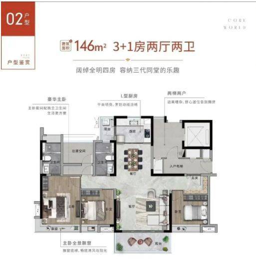 社区内部园林生态丰富,配备健身、休闲及亲子设施,结合城市低线景观公园,实现生态、休闲及生活便利三位一体。住宅产品以88-146平方米三至四房为主,南北通透,户型设计科学,精装修交付标准及智能化设施提升居住品质和便捷性。