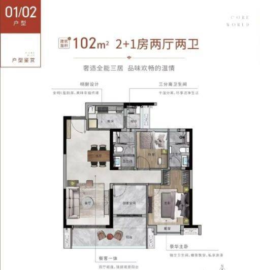 项目精装交付,配备正压新风系统、零等待热水循环、智能家居及智能控制面板等系统,细节上包括厨余处理设备、电热毛巾架、智能马桶盖及小夜灯等,提升居住便捷性及生活品质。