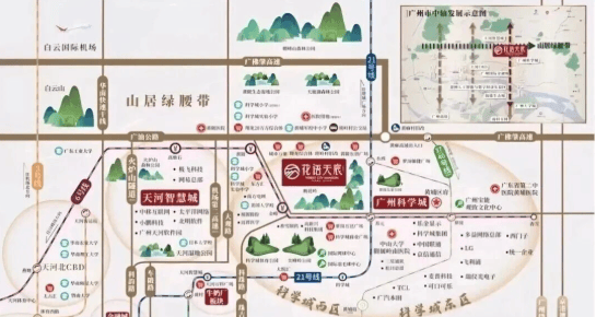 项目地处广州科技创新轴关键节点,位于天河智慧城与黄埔科学城交汇地带,兼具两大国家级产业高地的辐射红利。区域内高新技术企业密集,人才聚集效应显著,居住需求持续升级。黄陂板块作为科学城北拓的重要承载区,近年来基础设施与公共服务加速完善,正从传统居住区向产城融合的现代化新城转型。在此背景下,中铁建·信达山语城以低密度、山景资源与现房优势,精准切入改善型市场空白,成为区域人居品质跃升的代表作。