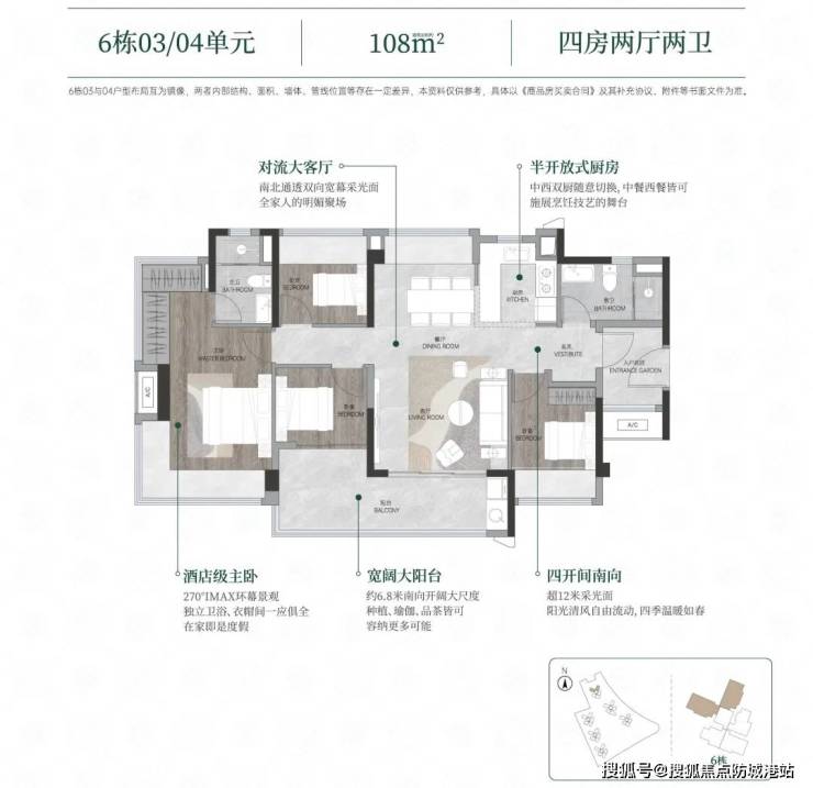 户型优势:88-125㎡三至四房,得房率125%,全南向布局;