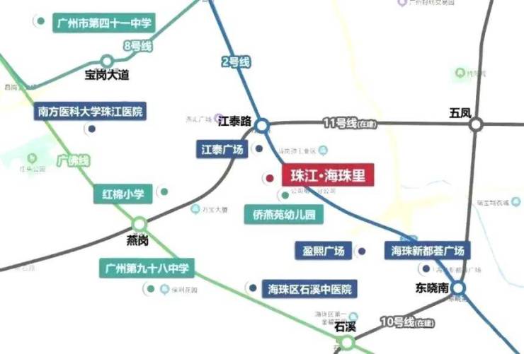 搭乘2号线仅需3站即可到达昌岗站,在这里可以无缝换乘8号线。8号线东西向贯穿海珠区,4站即可直达琶洲商圈。对于在琶洲工作的白领来说,这样的通勤时间完全可以接受。早上可以多睡半小时,晚上也能早点回家陪伴家人。更重要的是,在建的地铁11号线(环线)预计将在2026年内全线贯通,这将是珠江海珠里交通价值的又一次飞跃。