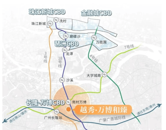 越秀万博和臻的区位优势,在于 “万博 CBD 核心 + 多维交通 + 成熟商业” 的三重价值叠加,是番禺区最具发展潜力的改善板块之一。从板块价值来看,项目位于万博 CBD 核心区,紧邻番禺大道,与万博千亿级产业平台(聚集希音、YY、携程等超 27000 家企业)无缝衔接,区域高收入人群集聚,高端居住需求旺盛;万博 CBD 商业已成熟运营(万达广场、四海城、天河城等),在建 K11、万象系商业将进一步升级为世界级消费中心,项目步行即可享受这些配套,生活便利性远超新兴板块。交通方面,自驾优势显著:依托番禺大道、汉溪大道、新光快速,非高峰期 30 分钟内可达珠江新城、琶洲;地铁方面,虽步行至 7 号线南村万博站约 1.6 公里(需 20 分钟或便民车接驳),但 7 号线 1 站换乘 18 号线(湾区快线),3 站直达珠江新城,公共交通仍能满足跨区通勤需求;未来社区规划便民车接驳地铁,将进一步提升通勤便利性。从资源辐射来看,项目周边 5 公里内覆盖三甲医院(番禺区第二人民医院、广东省妇幼保健院)、长隆度假区,医疗与休闲资源丰富,全方位满足改善家庭需求。售楼处电话: 提供购房咨询的联系方式 400-828-5661