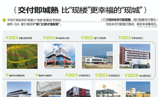 项目周边现有人人佳购物广场、庆达广场等成熟商业体,满足日常购物与餐饮需求。社区内部规划打造500米步行配套圈,下楼即可享受便捷生活。随着越秀在板块内配建大量设施,未来区域将形成醇熟大城生活氛围。此外,飞盘公园、少年宫、商业街等特色配套已陆续落地,进一步丰富居民娱乐与社交场景。