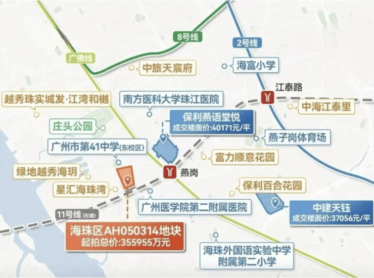 地铁:11号线棣园站约500米、广佛线燕岗站约800米,3站直达琶洲CBD,5站抵达珠江新城。