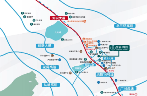 项目紧邻知识大道,是连接中新知识城南北的主干道,交通便捷。步行仅需600米即可到达地铁14号线知识城支线何棠下站,方便快捷地通往广州市区及其他重要区域。