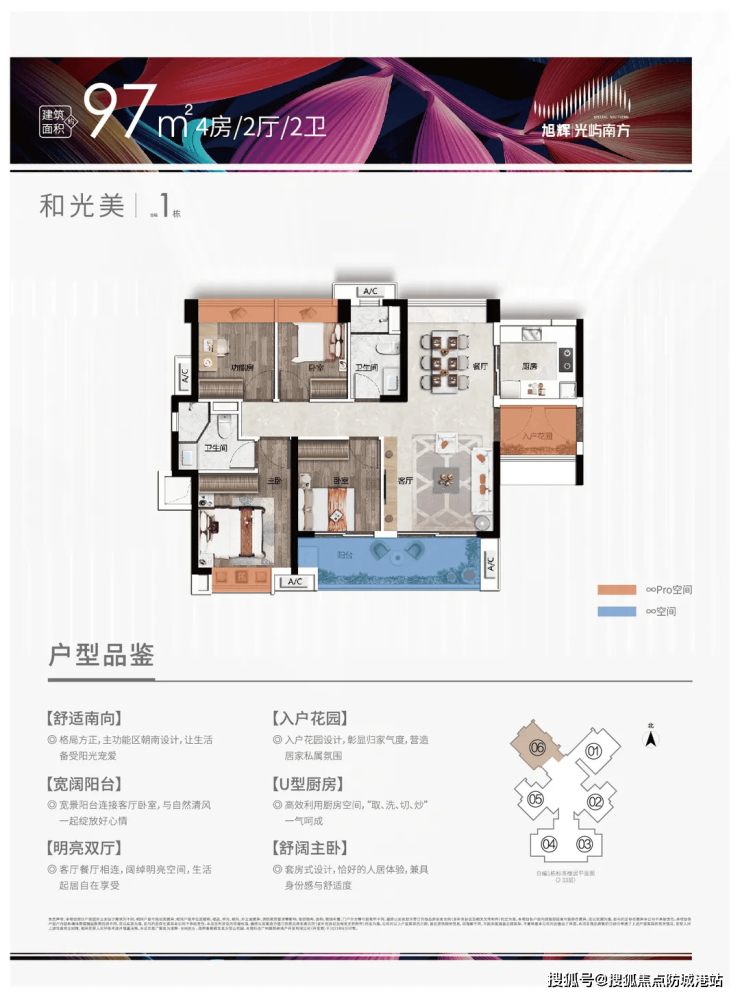 建面约75-110㎡三至四房,全南向户型,得房率超85%。