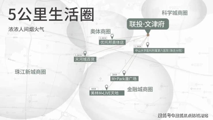 联投文津府位于广州天河区“珠江新城-金融城-科学城”黄金三角核心区域,实测距离珠江新城CBD仅15分钟车程(广园快速路)。未来鱼珠隧道通车后,通勤效率将进一步提升,实现与珠江新城的快速连接。项目周边3公里内汇聚网易、小鹏、酷狗等1000余家高新技术企业,高知人群集聚,价值潜力显著。