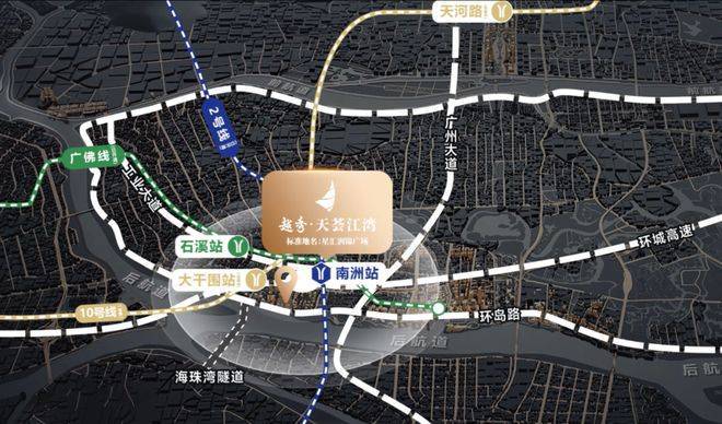 交通方面项目做得相当友好。三条地铁线路环绕,2号线南洲路站、广佛线石溪站都在1公里左右,10号线大干围站在建中,距离约800米。10号线通车后,从这里坐地铁5站就能直达体育西商圈,日常通勤去天河、越秀都很顺畅。开车也很方便,距离内环路入口仅1.3公里,快速连通广州各大核心区域,早高峰也不用太焦虑。