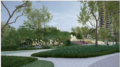 在园林景观方面,广州地铁·云筑上品致力于打造“花园中的家”。项目绿地率高达35%,精心规划了多层次、多维度的绿化体系。园区内绿树成荫,花草繁茂,四季有景,为业主提供了一个亲近自然、放松身心的绿色氧吧。园林设计充分考虑了全龄段居民的需求,设置了丰富的活动空间。针对0-3岁的婴幼儿,特别设计了互动景观墙,通过地面图案趣味创作,帮助孩子在玩耍中认知学习,辨识小昆虫、认识植物,寓教于乐。对于7-12岁的儿童,园区内设有浮岛滑板区、树屋躲猫猫区、迷你篮球场等游乐设施,让孩子们在安全的环境中尽情释放天性,与小伙伴一起快乐成长。