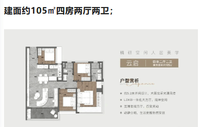 建面约105平方米和121平方米的四房两厅两卫户型,则更适合多代同堂的家庭。四房设计,功能分区明确,主卧、次卧、儿童房、书房各司其职,互不干扰。大面宽的客厅和阳台,不仅提供了充足的采光,还为家庭聚会、休闲娱乐提供了宽敞的空间。厨房采用U型或L型布局,操作台面宽敞,动线合理,烹饪体验更佳。卫生间干湿分离设计,提升了使用的便利性和卫生水平。这些户型的高得房率,使得室内空间显得更加宽敞明亮,完全消除了小户型的局促感。