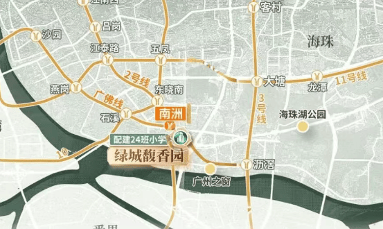 绿城馥香园在交通配套方面堪称一绝,其最大的亮点便是双地铁上盖。项目紧邻广佛线及2号线南洲站,从小区出发,步行短短几分钟即可到达地铁站,这对于日常出行的居民来说,无疑提供了极大的便利。