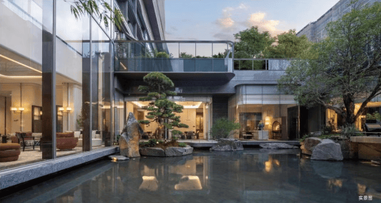 下沉式观瀑亭、露天社交会客厅错落有致地分布在园林之中,水院、园林及各种鲜花交织,仿若置身伊甸花园谧境。造型朴树、精品紫花风铃木、黄皮、鸡蛋花、玉芙蓉等植物点缀其间,从丛叶香到花香再到果香,沉浸在馥郁芬芳之中。