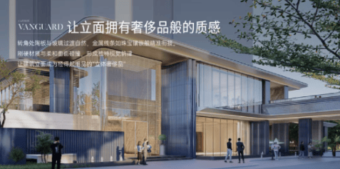 除了外部的休闲配套,项目内部的园林设计也十分用心,秉承立体、疗愈、探索、无界四大园林设计理念,围绕“家庭生活会所化”和“悦己主义”的核心,塑造了“四重归家礼序”和“五大园林体系”,为业主打造出一个交叠的生活底盘,让每一位业主都能感受到归家的仪式感和居住的舒适度。首先是“尊崇归家”,主入口参考浅水湾豪宅的设计理念,在静谧的氛围中,为业主提供充满仪式感的落客体验,既兼顾了社区管理的私属感,又彰显了项目的高奢定位。长达百米的先锋形象界面,叠加独属的社区地雕徽章,每一处细节都透露着精致与高端,让业主从进入小区的那一刻起,就能感受到不一样的尊崇感。