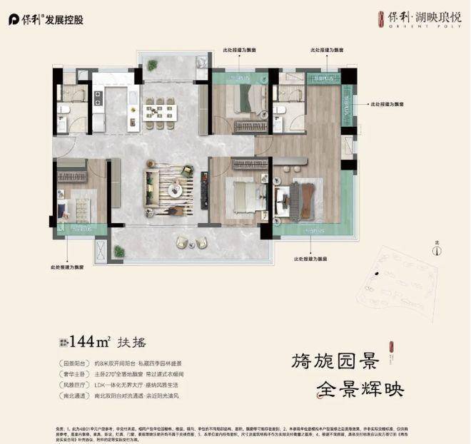 《扶摇》建面约 144㎡,同样两梯三户。南北对流双阳台设计,让室内空气形成自然流通,时刻保持清新。在炎热的夏天,穿堂风轻轻拂过,带来丝丝凉意,冬暖夏凉,居住舒适度大大提升。