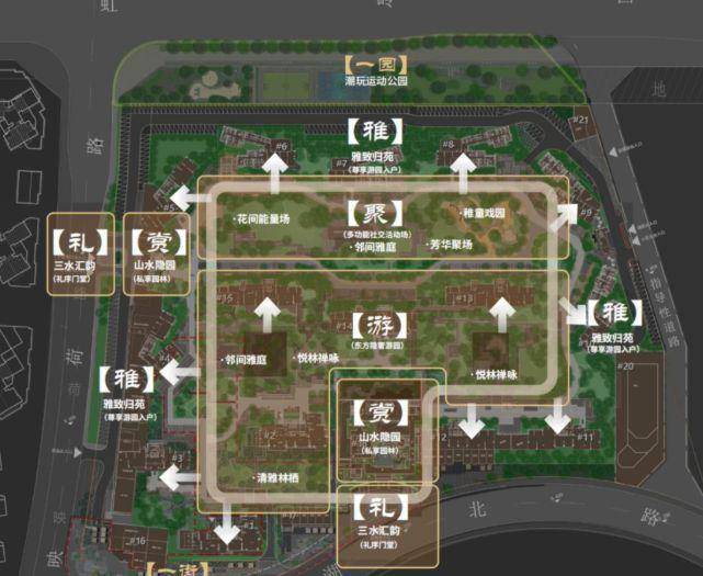 小区内部以新中式风格打造一园三堂的东方园林景观,意境东方,悦见青绿,松石守望。园林内种植了各种花草树木,形成多层次的绿化景观,四季皆有美景,为居民营造了舒适宜人的居住环境。园林内设置有休闲步道、景观小品、休息亭等,供居民散步、休憩,感受自然与人文的融合之美。