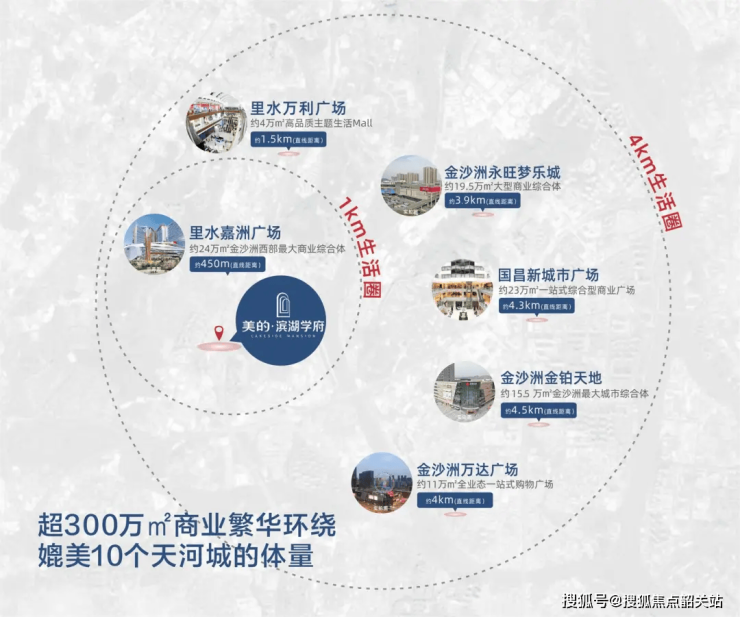 商业:自带1.2万㎡滨湖商业街(已签约永旺超市、星巴克),1公里内金铂天地(20万㎡综合体)