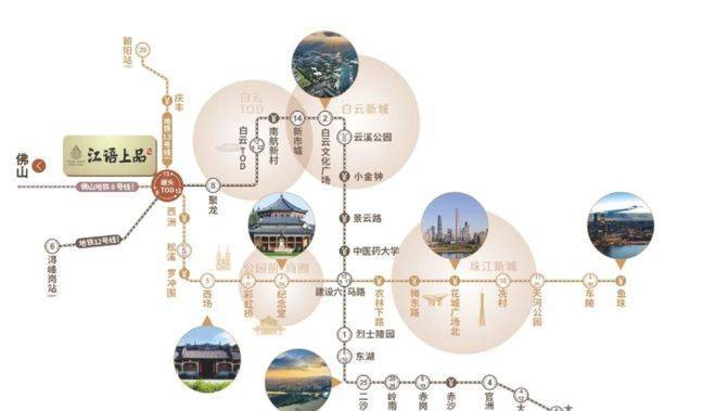 江语上品苑交通优势显著。三地铁交汇,12 号线已通车,作为广州换乘之王且是第一条无人驾驶地铁线路,与十数条轨道线无缝换乘,可直达大学城等多个区域;13 号线预计 2026 年通车,是广州东西走向黄金大动脉,贯穿四大主城区,串联多个核心区域;佛山地铁 8 号线规划中,助力广佛同城化。距离亚洲最大城市枢纽白云站仅 2.7km,该站集高铁、普铁、城际、地铁于一体,配备 6 万㎡枢纽商业。项目毗邻白云二线与棠槎路,通车后 5 分钟到白云站,10 分钟直达白云新城。小区出来走增槎路转内环路可到珠江新城,走沈海高速广州支线转科韵中路可到琶洲,无论是市内通勤还是前往周边区域都极为便捷。