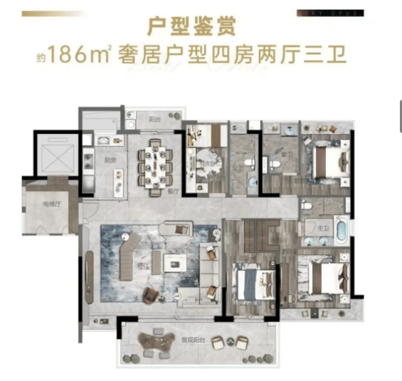 A5:项目在售户型涵盖124㎡、141㎡、186㎡等多个面积段,主力户型为124-186㎡大平层,均为三房或四房设计,适合改善型客群需求。