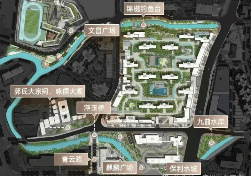 商业配套约40万方滨水商业,四大商业街区各具特色。新加坡式开放园林商业街、迷你玻璃盒子商业综合体、古建筑特色风貌街区、约5.5万方精品商业集群,构成板块最有烟火气的商业集群,尽享缤纷生活。