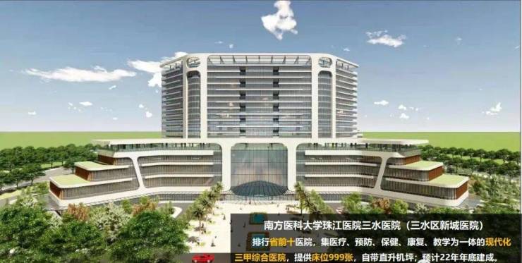 珠江医院三水医院新城院区总建筑面积约17.28万平方米,打造集医疗、科研、教学、研发、转化为一体的现代化医院综合体,配套住院楼、科教楼、门诊楼等多个功能区域,编制床位999张,引入国际先进医疗设备,重点建设高水平医疗、高精尖技术,拥有神经内科、神经外科、心血管内科、急诊医学科等20余个特色专科。医院依托南方医科大学和珠江医院的雄厚实力和科研优势,通过“管理+技术”双驱动,推进优质医疗资源扩容与基层卫生能力提升,现场聘任了珠江医院16名学科带头人为特聘专家,定期坐诊,同时打造了联扶一站式转诊中心、运动医学康复中心等多个特色项目,还开展直升机空中救援应急演练,拓宽医疗应急领域低空经济应用场景,提升急危重症患者的快速转运速度。此外,项目5公里范围内还可达三水区人民医院(三甲)、三水中医院等多家医疗机构,形成多层次、全方位的医疗保障体系,为业主的健康保驾护航,让每一位业主都能安心居住。