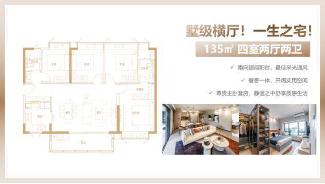 135㎡四房户型是一款更为宽敞舒适的奢艺之作。入户玄关设计,增加收纳空间,提升归家仪式感。客厅、餐厅与阳台形成一体化的通透空间,营造出开阔大气的居住氛围,无论是家庭聚会还是招待亲朋好友,都能轻松应对。主卧空间宽敞,带有独立卫生间和衣帽间,卫生间可设置淋浴区、马桶和洗手台,布局合理,使用方便。衣帽间可满足主人大量衣物的收纳需求,让生活井井有条。次卧和儿童房的设计也充分考虑了居住者的需求,空间宽敞,窗户采光良好。厨房采用 U 型设计,操作流程顺畅,各种厨房电器可合理摆放,为烹饪美食提供便利。此外,该户型可能还会配备一些人性化的设计,如预留的插座位置、室内的储物空间等,方便业主的日常生活。