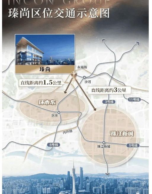 地铁出行:三地铁交汇(5/6/11 号线),距 6 号线沙河顶站 B 出口约 500 米,1 站至沙河站换乘 11 号线(广州首条大环线),2 站至区庄站换乘 5 号线;3 站达淘金、6 站至北京路 / 珠江新城,一线直达琶洲,15 分钟覆盖天河核心通勤圈,交通便捷度居板块首位。