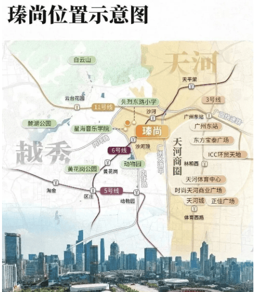 天河沙河板块 12 年唯一全新住宅,三地铁交汇(5/6/11 号线)通勤便捷,省一级先烈东小学加持,8 楼以上望白云山,港企高端品质,稀缺性与实用性兼具。