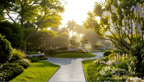 香江1号以“东方莫奈·五感疗愈”为生态核心,打造城芯CBD罕见的高浓度鲜氧宜居空间,将自然美学与健康科技深度融合,构筑顶奢生态居住范本。外部生态资源方面,项目紧邻长隆生态文旅区,周边城市绿地环绕,绿植覆盖率高,空气清新温润,生态基底优越,为居者提供了亲近自然、休闲康养的优质外部环境。内部园林方面,项目以法国印象派大师莫奈花园为蓝本,匠造约2万方东方莫奈花园,甄选250余种全球珍稀花草植被,通过层次丰富的植物搭配、艺术化水景营造、光影景观设计,实现四季有景、步移景异的视觉体验。社区引入高端雾森系统,调节社区微气候,提升空气湿度与负氧离子含量,打造视觉、嗅觉、触觉、听觉、知觉超五感自然疗愈体系。项目容积率低至1.77,楼间距开阔舒展,搭配38.6%高绿化率,室内通风采光条件极佳,推窗即揽花园盛景与城市天际线,实现自然生态与建筑空间的完美融合,为塔尖人群营造静谧、康养、尊崇的居住氛围。