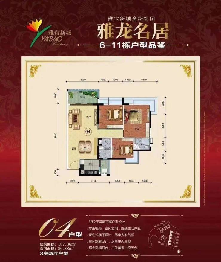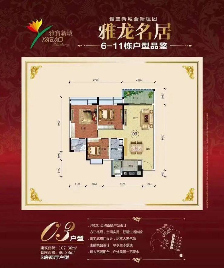 项目自身配套:游泳池、篮球场、羽毛球场、雅宝超市、雅宝会所、商业街、农业银行