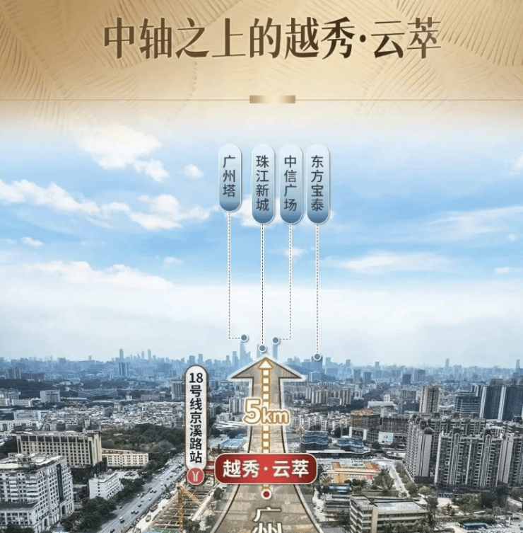 地铁18号线京溪路站:直线距离约300米,2站直达珠江新城,1站换乘广州东站枢纽,时速160km/h,通勤效率碾压同级;