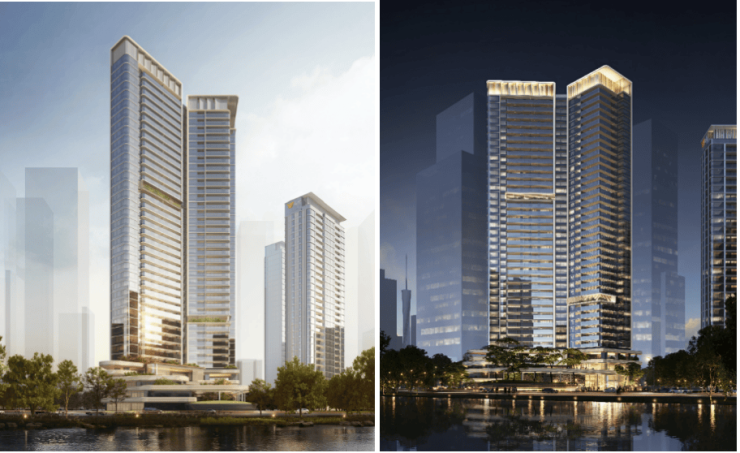 项目采用 “超级底盘” 规划,将公建配套设置在 4 层以下,住宅布局于 5 层以上,通过连廊与屋顶连接不同楼层配套,形成立体游园动线;平面上以塔楼划分前庭后院,前庭设环岛落客区,后院打造山水景观,既保障了社区的私密性,又提升了居住的舒适度。此外,由朱弘博大师操刀的景观设计,以 “城市山林” 为核心,将古典山水园林与现代都市生活融合,让业主在繁华 CBD 中也能拥有一方静谧的自然天地。随着琶洲片区交通、商业、产业配套的不断完善,项目的居住价值与资产价值还将持续提升。