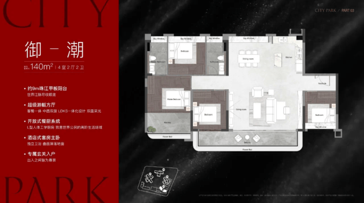 如果说120㎡是“精致改善”,那么140㎡就是“终极改善”。这套户型将整个项目的优势发挥到了极致: