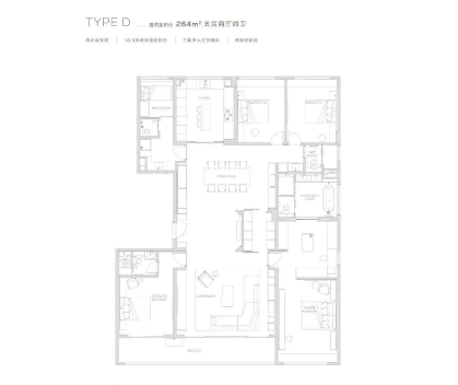 合生缦云在售户型丰富,涵盖 145㎡三房、174㎡四房、190㎡五房、230㎡五房、260㎡五房、264㎡五房、315㎡五房等多种户型,后期还将推出 250㎡大户型产品。其中 145㎡三房两厅两卫产品,餐厨一体化设计,7 米宽厅可切换多种生活场景;174㎡四房两厅三卫产品为端户边厅布局,形成 LDK 一体化;190㎡五房两厅三卫产品南向双主卧,中西厨布局;264㎡五房两厅四卫产品有超奢华四件套南向主卧、6.6 米巨型方厅;315㎡户型则配备南北双阳台、独立保姆房、巨幕大宽厅和私家电梯厅,多数户型专梯专户,保障业主出入私密性。