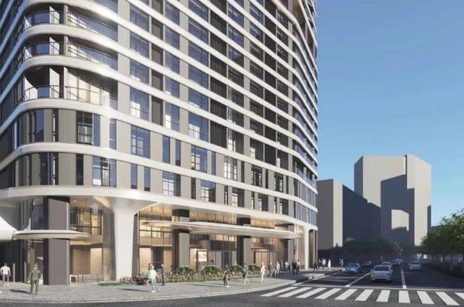 空间私密性是项目高端属性的重要表达方式。住宅区采用专梯入户设计,每户配备独立电梯厅空间。这样的设计逻辑更接近国际高端住宅标准,能够减少公共空间干扰,提升家庭生活仪式感。住宅内部采用全屋奢装交付体系,配置奢石材质装饰面板、德系高端厨电系统以及卫浴地暖系统。公共区域则采用7米挑高大堂设计,地面及墙面大量应用石材肌理材料,强化豪宅级视觉体验。