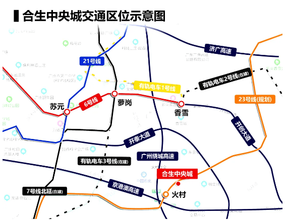 项目地处黄埔科学城核心板块,周边科创产业密集,对面即为科技企业加速器,邻近纳金科技园、穗开科技园等,近 500 家中小型科创企业带来超万就业人口,居住氛围与发展潜力兼具。交通配套上,项目距离地铁 6 号线香雪站约 2.6 公里,可通过骑行小电驴(约 10 分钟)接驳;规划中的地铁 23 号线将进一步完善区域交通。项目内设 2 个公交首末站及 1 个楼巴站,楼巴可直达天河石牌桥,日常公交出行便捷。自驾方面,项目门口的开放大道正在拓宽为双向 8 车道,周边还有广深高速、广园快速等主干线路,自驾 30 分钟左右可达天河,轻松衔接主城核心区。