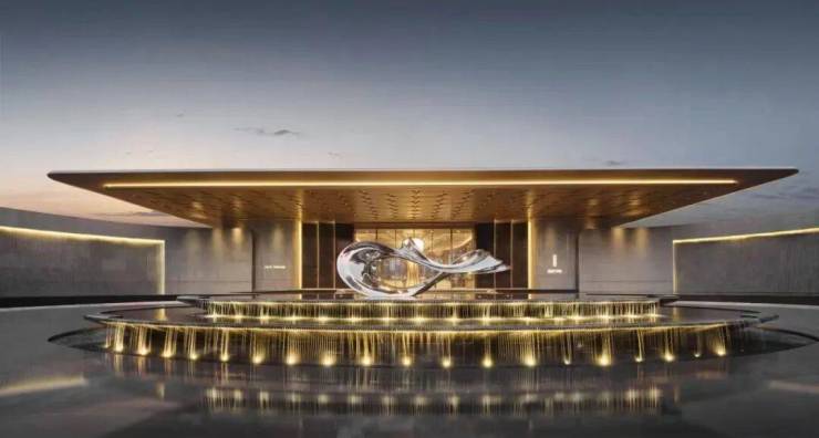 西派天河序,造价200万的照壁、高8.18米,长44.6米的恢弘豪门、长达116米的巨幅景墙,再搭配50米弧形环抱水景。