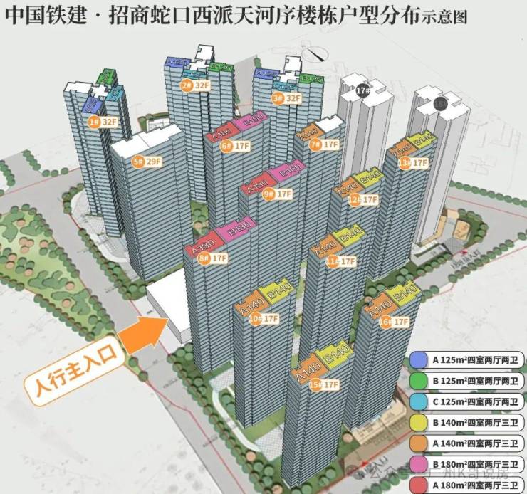 1-3号楼,120-143平,2梯4户,塔楼,层高3米,总层高32层。