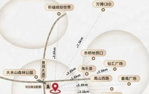 虽然目前没有地铁 ,但门前的禺山西路可连接番禺大道、东新高速和新光快线,开车出行超方便。10 分钟就能到达市桥商圈,20 分钟到万博 CBD,30 分钟到珠江新城。最近的地铁 3 号线市桥站距离 5 公里开外,不过未来规划中的地铁 26 号线将大大提升交通便利性,出行会更轻松~而且公交也可接驳 3 号线市桥站,日常出行还是能满足的。