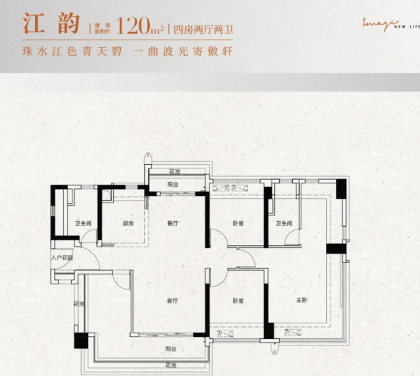 所有户型设计都注重空间利用效率,使用率最高可达114%。特别是绝版报建80公分飘窗和超宽阳台的设计,进一步提升了居住舒适度。例如,建面约120㎡的户型采用了四房两厅两卫设计,南向大阳台或南北双阳台,主卧带有270°飘窗。