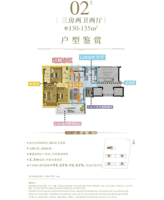 小高层(16楼),2梯2户板式设计,3.3米层高,户型最小面积为130平方米三房,最大面积为224-229平方米四房。