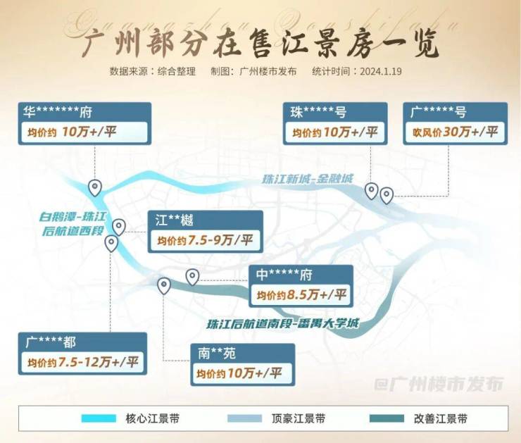 顶奢户型设计,超大尺度空间,全明通透,一线头排江景,专属梯户配比,打造圈层专属居住体验,单价区间 2.8-3.2 万 /㎡,是广佛滨江豪宅的标杆之作。