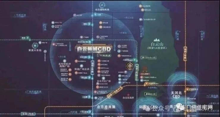 天健·云山府位于白云新城 CBD 中轴,周边商业配套堪称顶配。