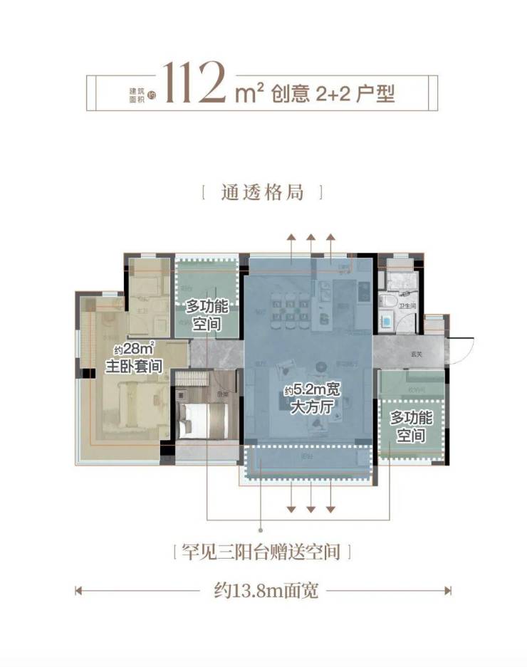 140㎡四房****:南北通透+双主套+约8米阳台,得房率超85%;