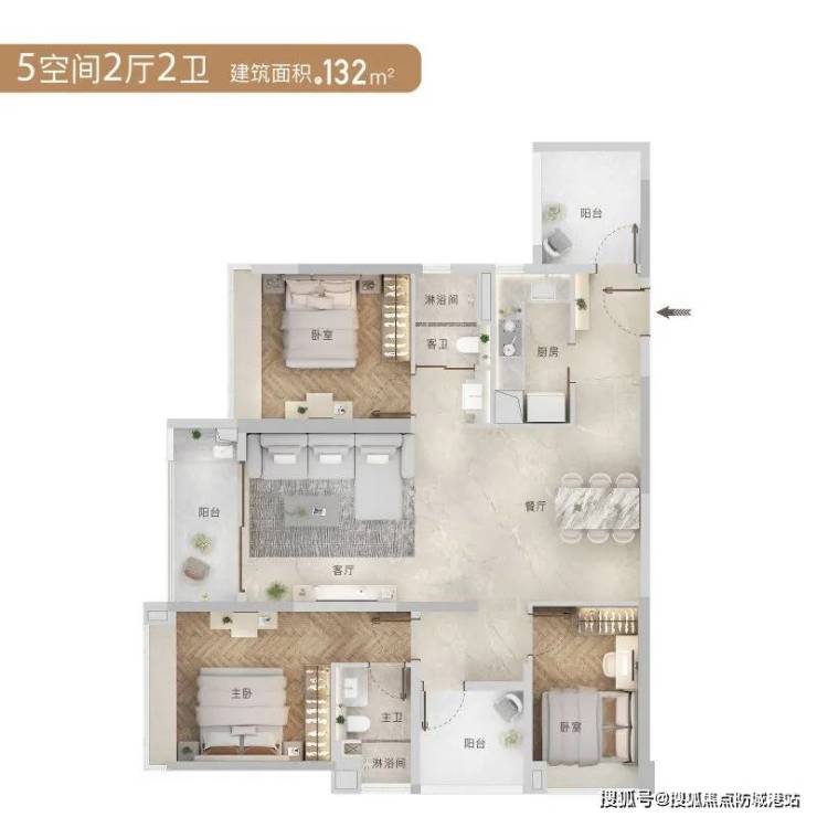 主力户型设计注重实用性,如114㎡空中叠墅通过挑空、中空技术拓展空间,可实现五房三卫双套间设计。平层产品采用LDK一体化设计,客厅、餐厅、厨房无隔断,增强家庭互动空间。