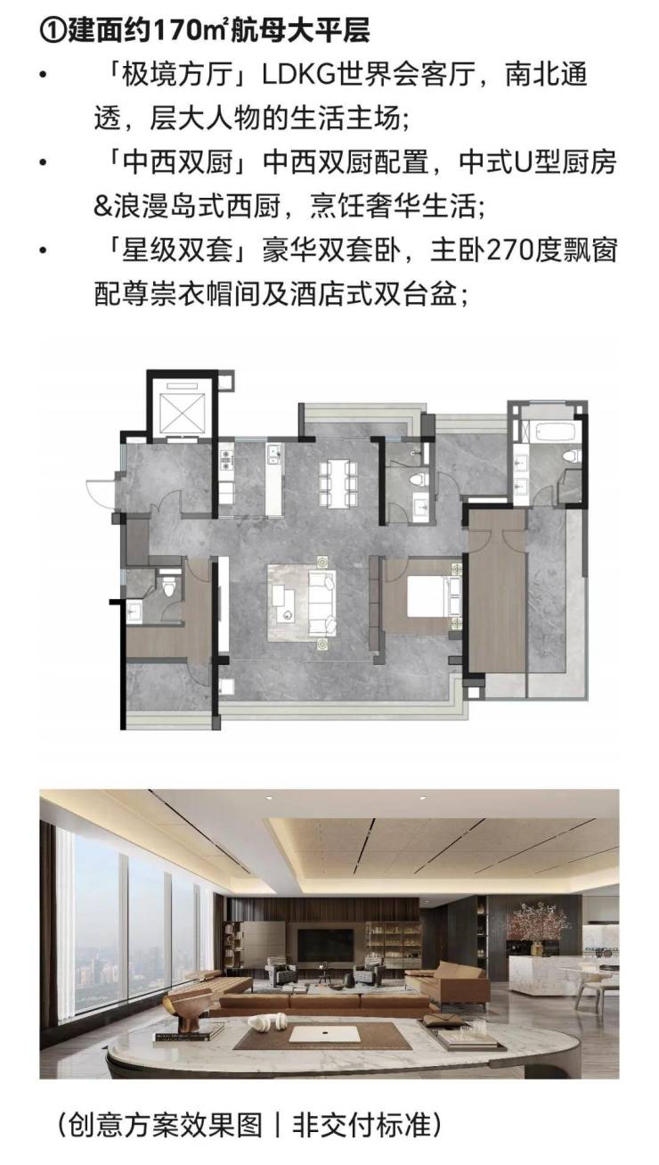 170㎡极境方厅:7.5米南向景观阳台,全屋收纳系统达25m³,适配三代同堂需求。