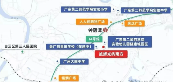 旭辉光屿南方位于白云区东北部钟落潭板块,地处千亿级广州大健康产业基地辐射范围。该基地投资 200 亿,规模相当于 22 个广钢新城,已吸引何济公、广药集团等 29 家知名企业入驻,涵盖医药研制、健康服务等四大功能片区,未来将形成庞大的产业集群与人才需求。板块同时叠加白云大学城教育资源,13 所高等院校为区域注入科技与人才活力,随着交通与配套的逐步完善,钟落潭正从价格洼地向价值高地转变,项目作为板块内优质刚需盘,将优先享受发展红利。