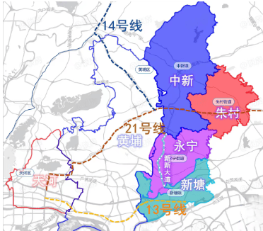 永宁板块坐落于增城国家级经济技术开发区,作为广州三大国家级开发区之一,2021 年综合发展水平考核位列全国 76 位。板块规划层级高,重点发展先进制造业,已引进五羊本田、珠江钢琴等龙头企业,未来预计导入 20 万产业人口,叠加紧邻的永和经济区,双重产业加持下隐藏大量置业需求。地理位置上靠近黄埔与天河,享受广州东进战略红利,交通路网持续升级,新白广城轨(在建)、增天高速等交通枢纽逐步落地,虽目前无地铁直达,但立体交通网络正加速弥补短板,区域人口与价值有望持续提升。