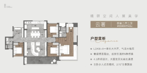 143㎡四房两厅两卫:豪华户型,适合追求高端品质生活的家庭。超大的阳台设计,让住户可以尽情享受阳光和美景。